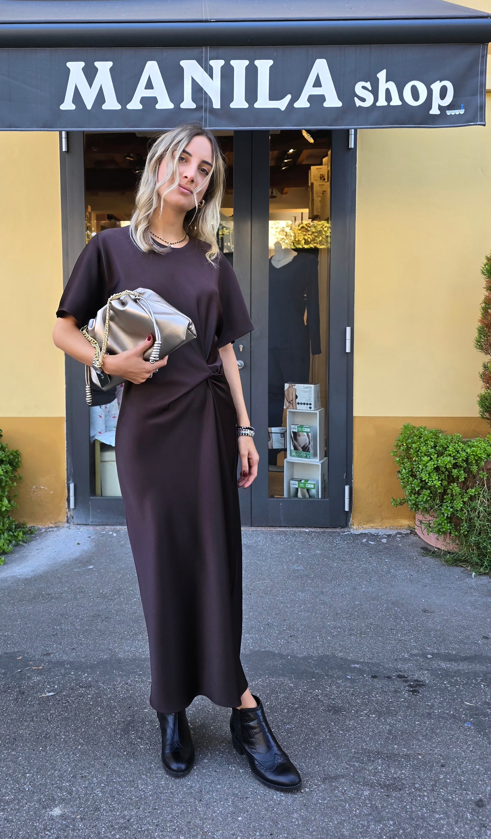Un abito iconico, composto da una gonna lunga morbida che si chiude in vita regolando grazie a 3 bottoni