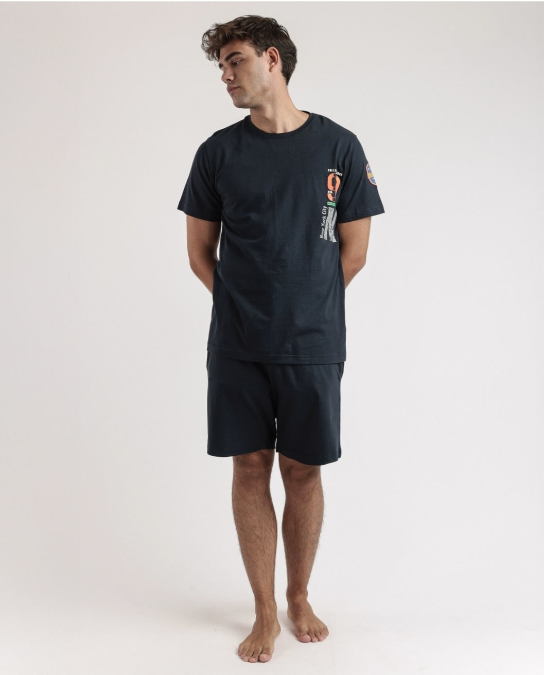 * Pigiama in maglia di cotone, maniche corte, scollo rotondo e pantaloncini.