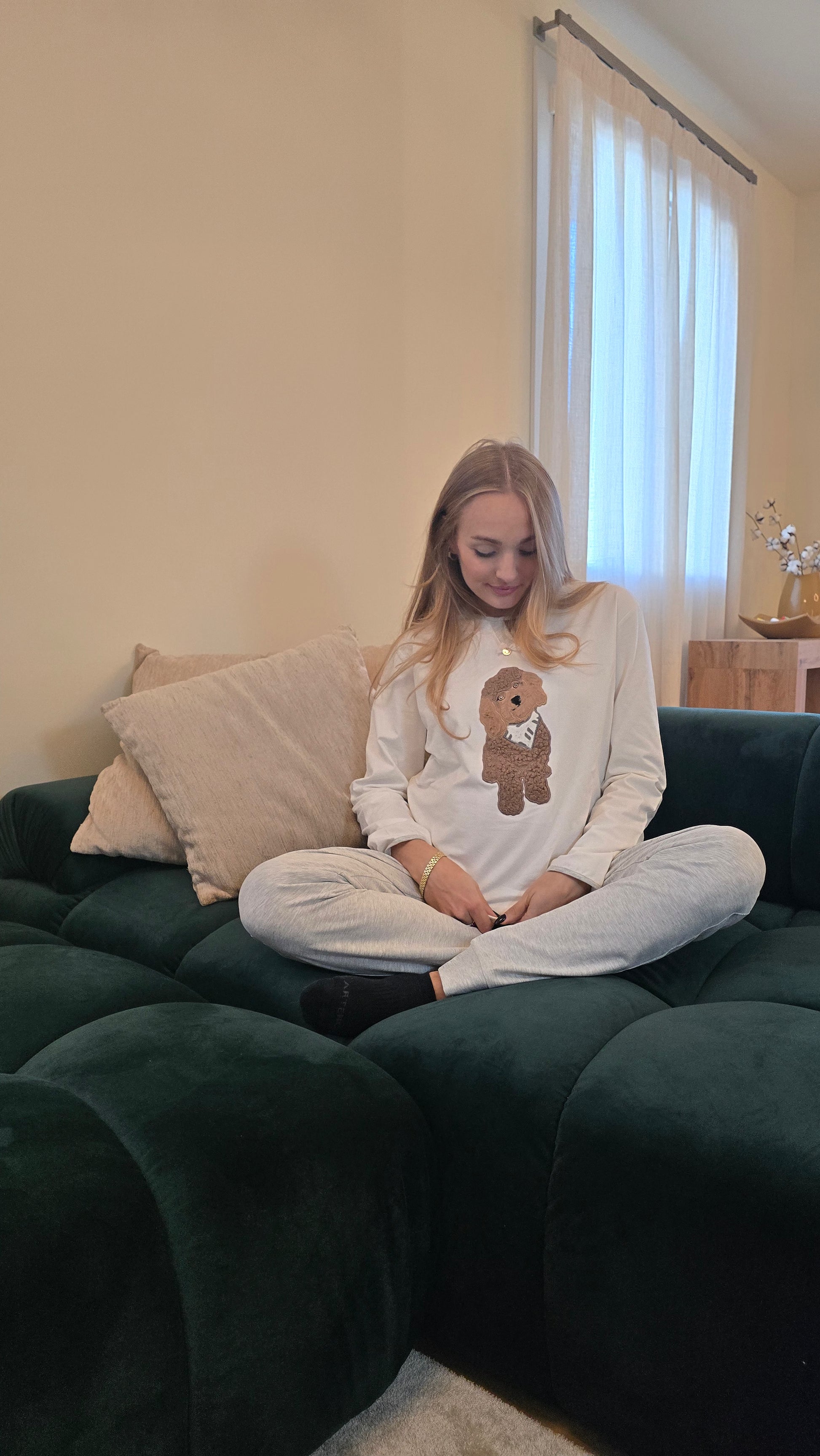 Maglia con Applicato in rilievo un cagnolino barboncino pelosetto morbidissimo